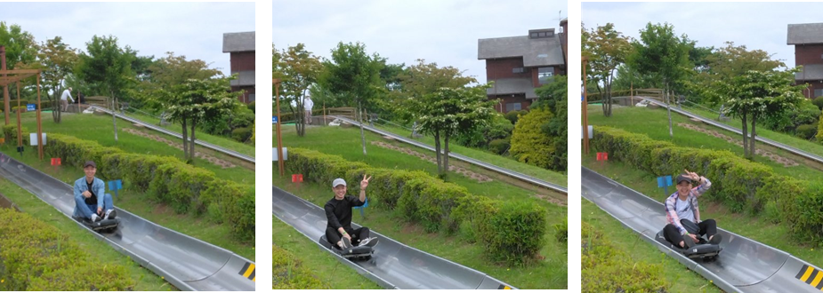 やっぱりハイライトは「わくわくスラーダー」である。団体で65名という大人数なのでバスが到着すると、一気に順番待ちの列が出来上がる。係員に聞いたら、普通に滑ると一人約10分弱だそうだ。順番待ちは10秒程度だったので、1時間で60人程度は乗れる計算になる。ベトナム人の学習者は、最後の方に乗って楽しんだようだ。